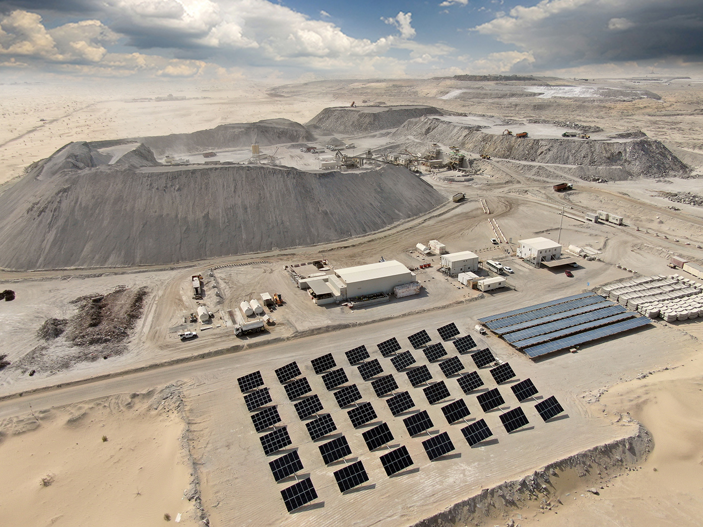 Al Dhafra Recycling industries (ADRI) is responsible for the processing of construction and demolition materials across Abu Dhabi, to further produce recycled products suitable for use as road base aggregates, structured and non-structured backfill projects. Due to the remote location of ADRI, the facility relied solely on diesel generators to provide power to jaw crushers, cone crushers, screening plant, conveyor belts and site offices. Aside the increased carbon footprint and the cost involved, ADRI suffered from generators continuously heating up, which resulted in frequent shutdowns culminating in loss of power.